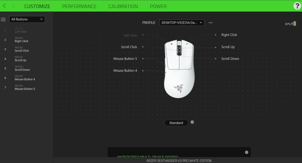Yazılım üzerinden buton atamaları, hassaslık ayarları, Polling Rate ayarı, akıllı takip ayarları, güç modu ayarları ve profil ayarları yapılabiliyor. Yani ihtiyacınız olan her düzenlemeyi Razer Synapse yazılımı üzerinden gerçekleştirmeniz mümkün.