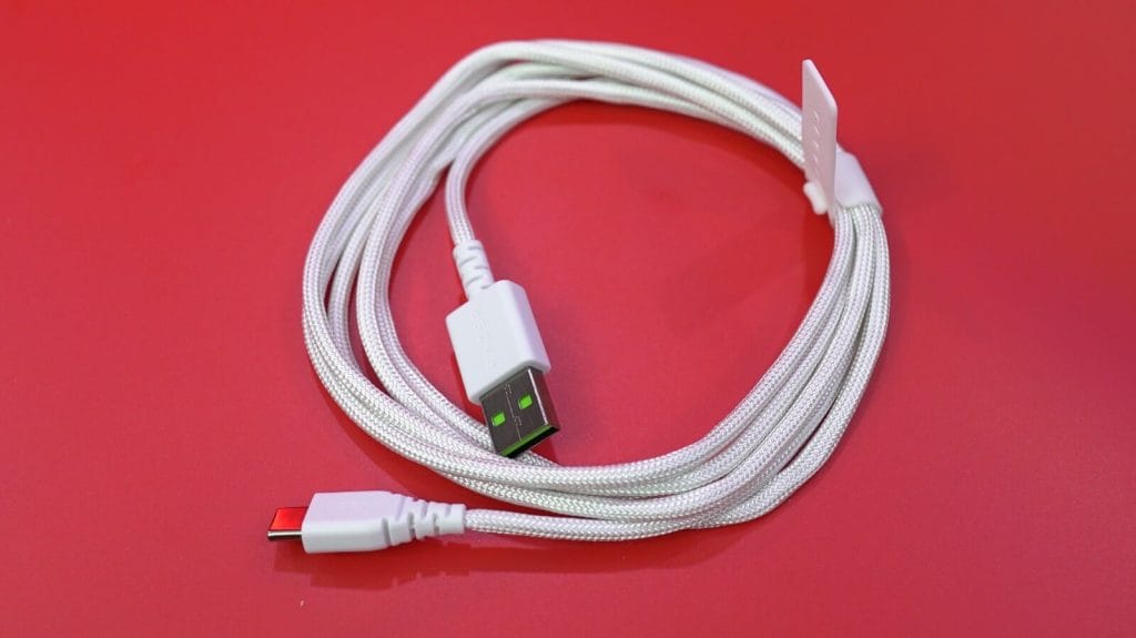 Bağlantı kısmına geçtiğimiz zaman da güzel bir artı var. Kutunun içerisinden bir dongle çıkıyor. Siz standart dongle’ı bilgisayarınıza değil de bu cihaza takıyorsunuz. İşte o dongle kablo ile bilgisayara takılıyor. Diyelim ki oyun sırasında şarj bitti. Bu durumda dongleda yer alan kabloyu direkt olarak farenize takıp, kablolu kulllanıma devam edebiliyorsunuz.