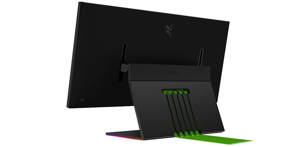 Oldukça ilginç bir tasarıma sahip olan Razer'ın yeni oyuncu monitörü Raptor, mat siyah bir dış yüzeye ve alüminyum bir tabana sahip. Razer Synapse 3 uygulamasını kullanarak özelleştirebileceğimiz özel bir alt stand üzerine oturan monitör kablo karmaşasını önlemek için arka tarafında bulunan kablo yönlendirme kanallarını kullanıyor.