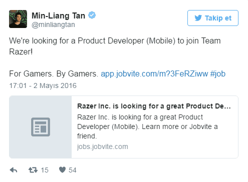 Razer'ın CEO'su Twitter'dan Duyurdu