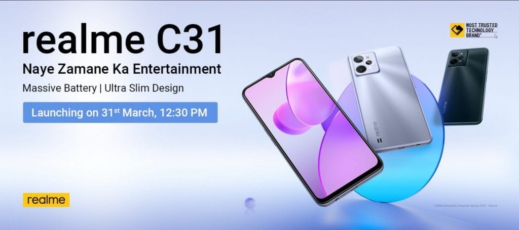 Akıllı telefonun 3GB RAM ve 32GB depolama alanına sahip varyantı 1,599,00 IDR (110 USD/100 EUR) fiyat etiketine sahipken 4GB RAM ve 64GB depolama alanına sahip varyantı ise 1.749,000 IDR (120 USD / 110 EUR) fiyat etiketine sahip. Realme C31, bu ay sonu (31 Mart) Hindistan'da satışa sunulacak. Akıllı telefonun ülkemize gelip gelmeyeceği henüz bilinmiyor.