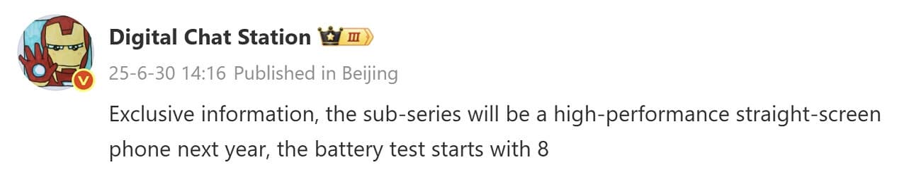 Özel bilgi, alt seri gelecek yıl yüksek performanslı düz ekranlı bir telefon olacak, pil testi 8 ile başlıyor.