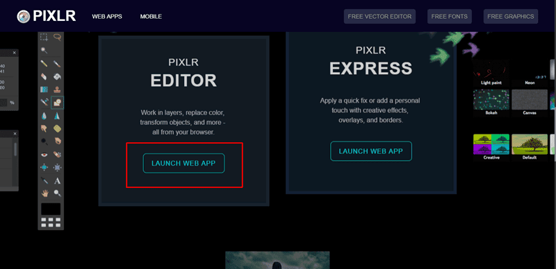 2- Sayfayı aşağı kaydırdıktan sonra Pixlr Editör'ü çalıştırın.