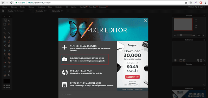 1-Pixlr sitesine girin.( buradan )