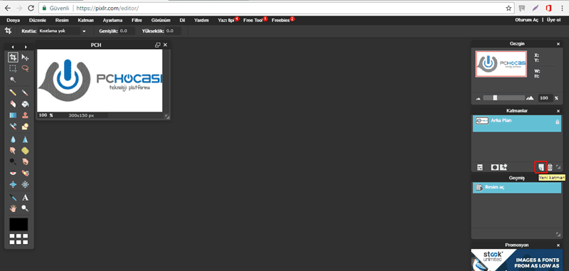 4-Sağ taraftan resimde gösterilen kısmı kullanarak yeni katman ekleyin.