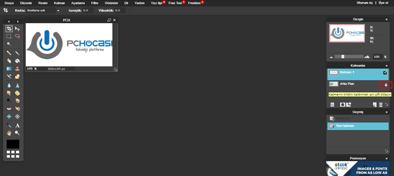5-Resimde gösterilen kısımdan katmanınızın kilidini açın.