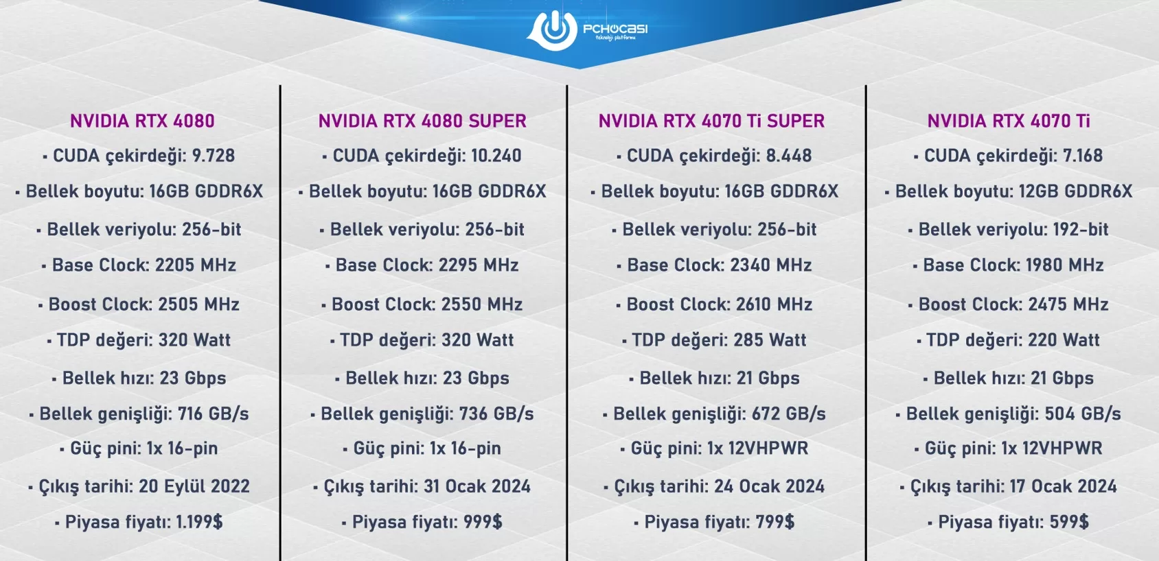 RTX 4080 üretimi durdu. Tüm bunlar düşünüldüğü zaman yeni SUPER modelini başarılı bulduğumuzu söyleyebiliriz.