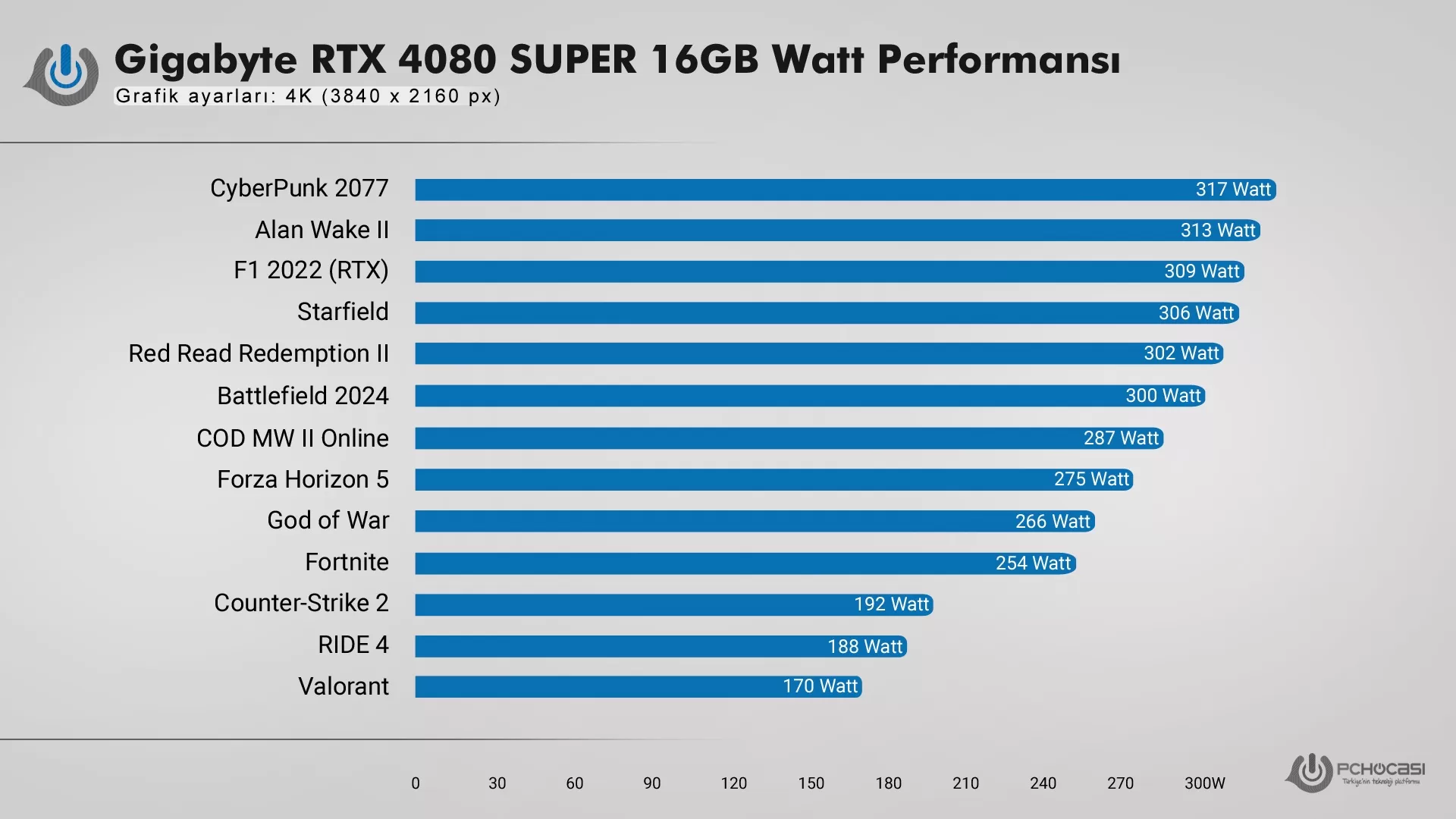 Maksimum olarak gördüğümüz Watt değeri, 317 Watt seviyesinde. CyberPunk 2077 oynadığımız sırada maksimum değeri gördüğümüzü de hatırlatalım.