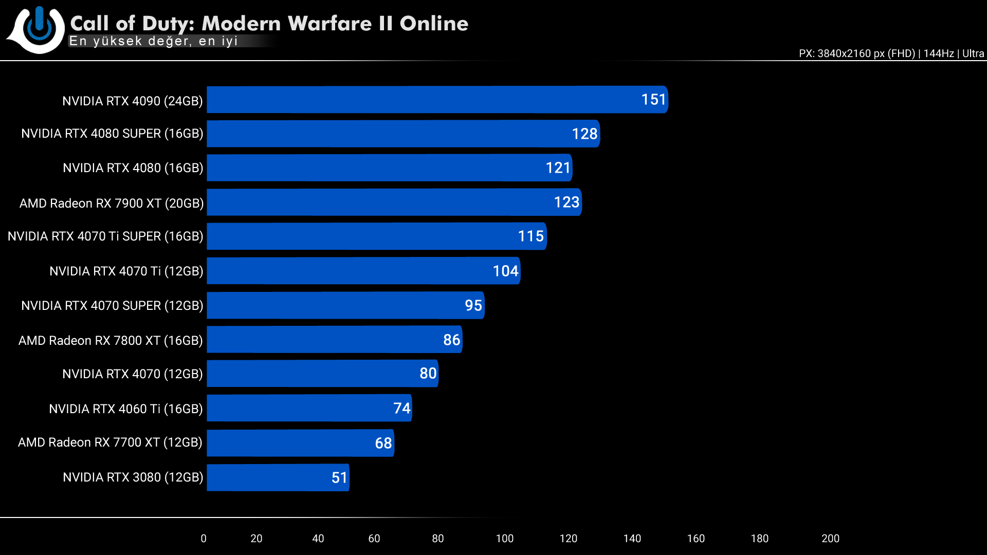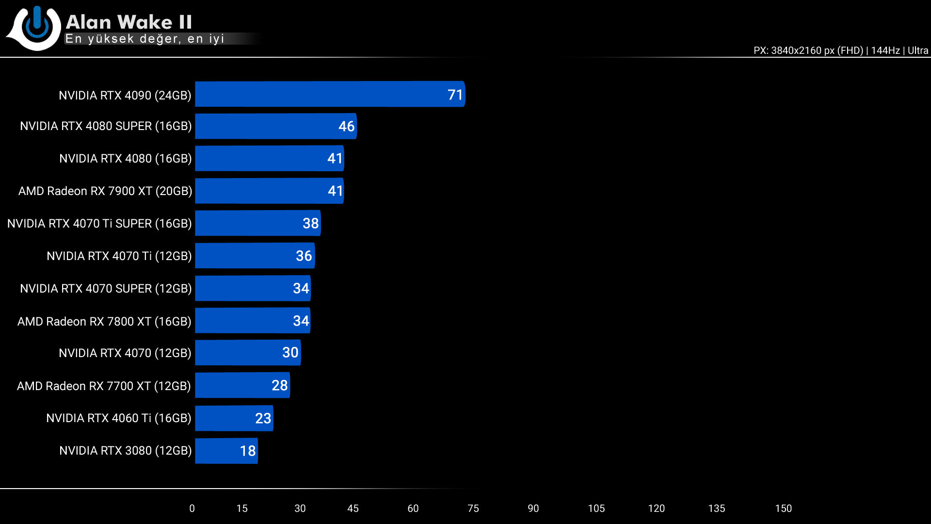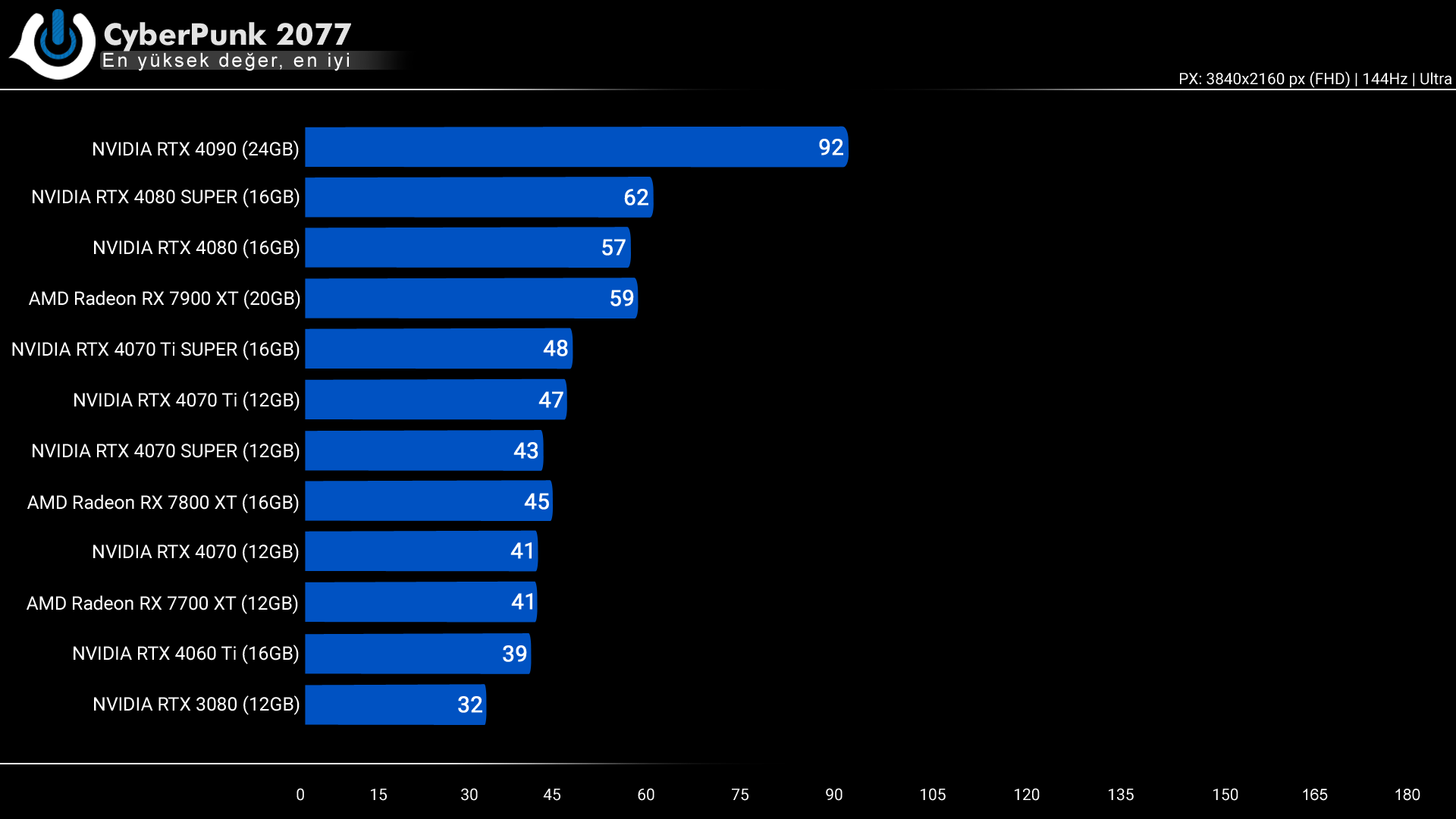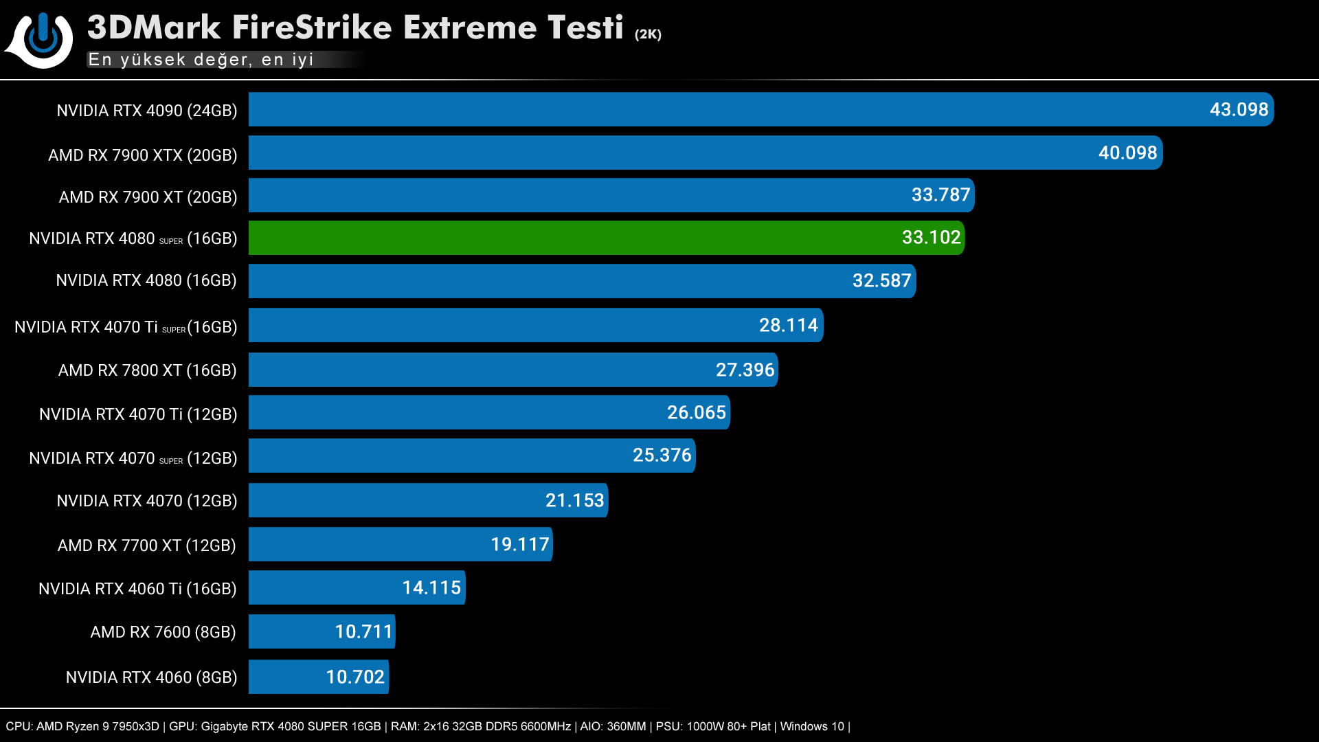 33.102 skorunu elde etmiş durumda. Bu skorla beraber yeni ekran kartının RX 7900 XT modelinin hemen altında konumlandığını görüyoruz. Grafiklerden de görebileceğiniz gibi arada çok büyük bir fak söz konusu değil.