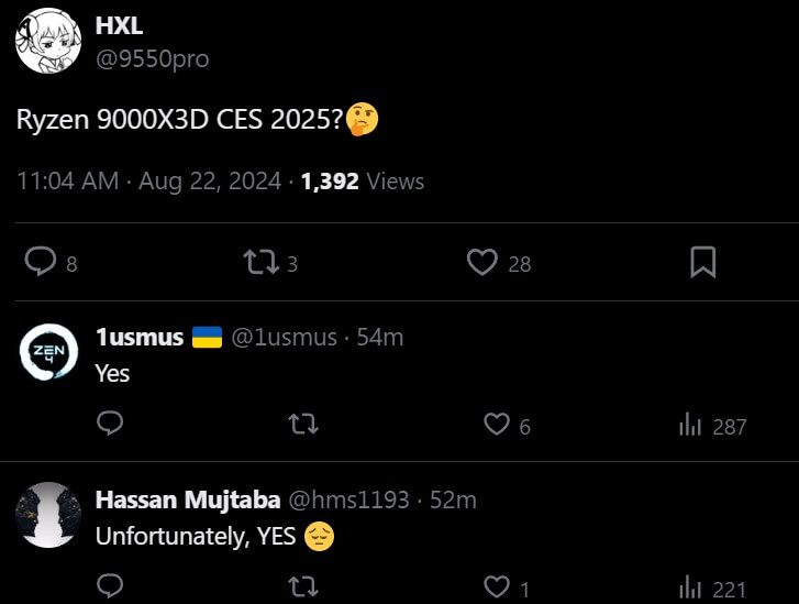 Yeni yılın başlarında ilk haftalarında gerçekleşecek CES 2025 etkinliğinde tanıtımı gerçekleşmesi beklenilen Ryzen 9000X3D serisi ile ilgili X (Twitter) platformu üzerinden bu konu hakkında