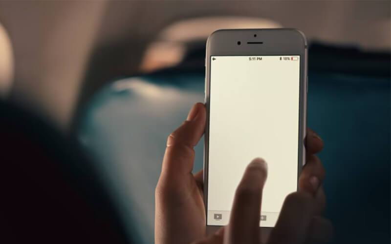 Daha sonra uçakta film izlemeye çalışan kadın uygulamanın açılmaması nedeniyle telefonu kapatıp yanındaki Samsung kullanıcısının telefonuna bakmaya başlıyor. Daha sonra yağmurda taksi çağırmaya çalışan kadın telefonda uygulamanın açılmaması nedeniyle taksi çağıramıyor.