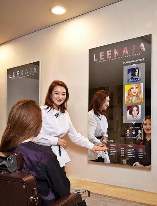 İlk olarak Kore'deki Leekaja Hairbis saç tasarım salonunda gösterilen ayna ekran teknolojisi, 55 inç boyutundaki ekranı ile müşterilerine özel hizmet sunabilmesi için tercih edildi. Salon içerisinde doğrudan ayna ekranlardan müşterilere farklı saç stilleri ve renkleri gösterilebildiği gibi, son trend tüm saç modelleri de kişiye uygulanabiliyor. Ardından müşteri beğendiği saç stilini seçerek uygulanmasını talep ediyor.