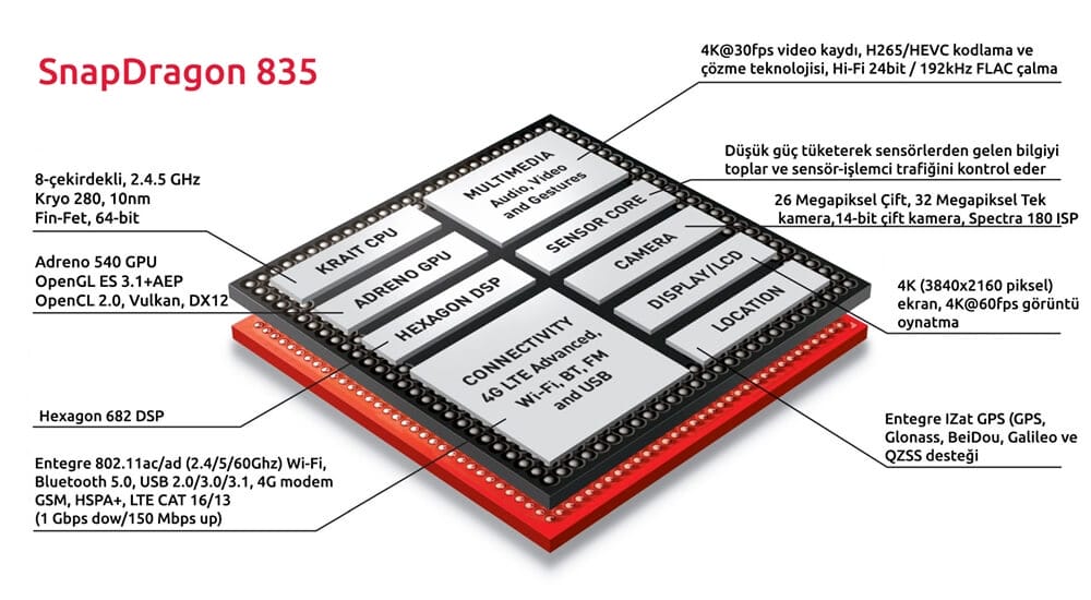 Qualcomm, Snapdragon 835 işlemcilerin içerisine üç milyardan fazla transistör sığdırabilmiş. Bakalım ilerleyen günlerde yeni işlemciyi kullanacak olan firmalar da yavaş yavaş kendisini belli etmeye başlayacak. Daha net detayları yeni cihazlar ile birlikte görebileceğiz.