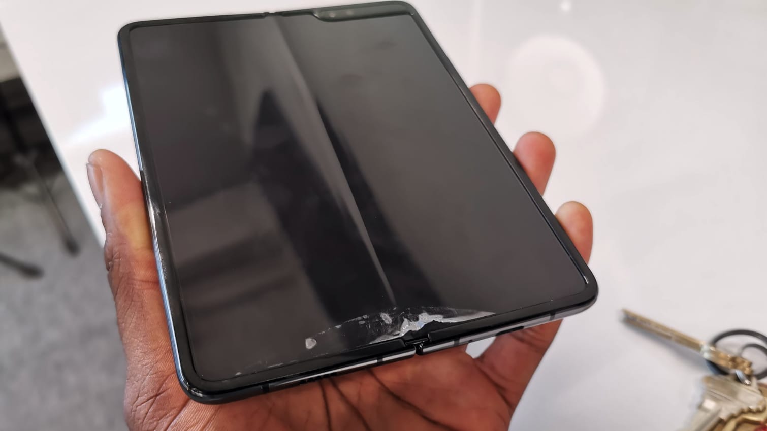 Samsung, eleştirmenlerin yaptığı test sonucu cihazın ekranında gözlenen sorunlardan sonra telefonu ertelemişti. Sorunu kısaca özetlemek gerekirse 7.3 inç tablet büyüklüğündeki ekranın jelatini soyulması ekranın bozulmasına neden oluyordu.