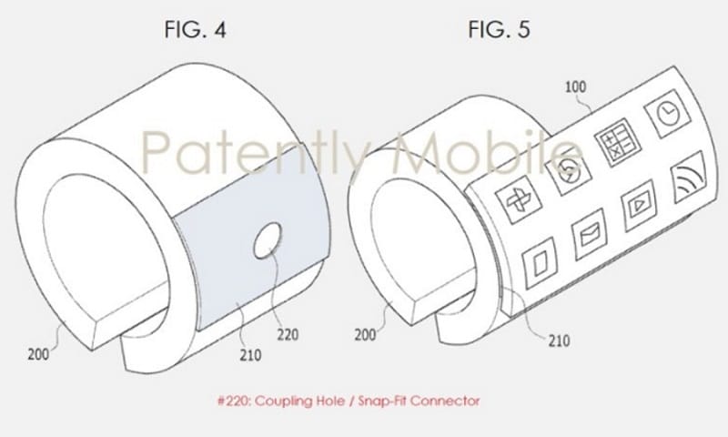 Bileklik, şirketin satışını yapmaya başladığı Gear Fit2 Pro serisi gibi Samsung‘un mevcut fitness izleyicilerine göre daha dairesel ve daha geniş görünüyor. Ekranı, kayış etrafında bükülüyorsa da, patent görselinde görülebileceği gibi, düzleştirilebilir ve bu nedenle cihazın geri kalanından çıkabilir.