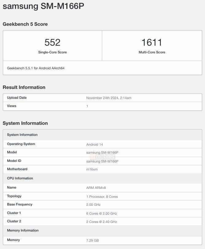 cep telefonu Galaxy M16 5G'nin geekbench testinin sonuçları ortaya çıktı.