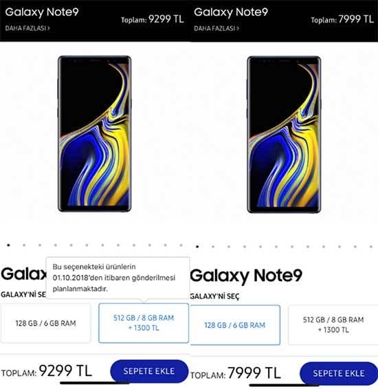 Samsung'un son çıkardığı amiral gemisi olan Note 9'a zam yapıldı. 128 GB'lık modeli için 6500 TL, 512GB'lık modeli için 7500 TL fiyat konulmuştu. Samsung'un resmi internet sitesinde yeni fiyatlar belli oldu. Yazan fiyatlara göre 128 GB'lık modeli 7999 TL, 512GB'lık model ise 9299 TL oldu. Yani ortalama 1600 TL'lik bir artışa gidildi.