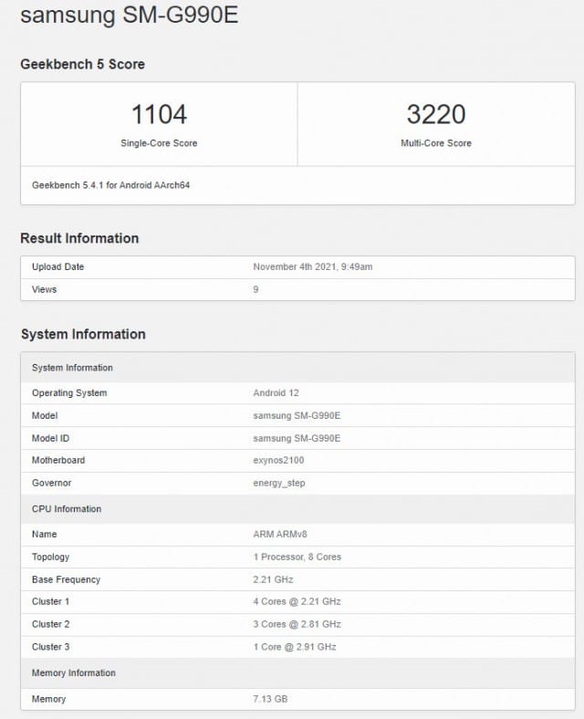 Güney Kore merkezli teknoloji devinin amiral gemisi akıllı telefon ailesinden Galaxy S21'nin daha uygun fiyatlı bir varyantı olanı Galaxy S21 FE'nin model numarası SM-G990E olarak atanmış, Geekbench listesine giren modelde 8GB RAM bulunuyor ve gücünü Exynos 2100 yonga setinden alıyor.