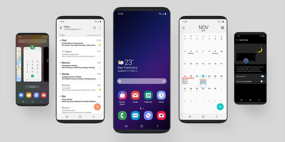 Google'ın yaptığı geliştirmeler ve özelliklere ek olarak yeni Android 9 Pie güncellemesi, Samsung tarafında da çeşitli özelleştirme ve içerikler barındırıyor. Bunlardan en önemlisi ve dikkat çekeni ise tamamen yenilenmiş One kullanıcı arayüzü. Yeni arayüz daha basit bir kullanıma ek daha hızlı bir deneyim sunmayı amaçlıyor.