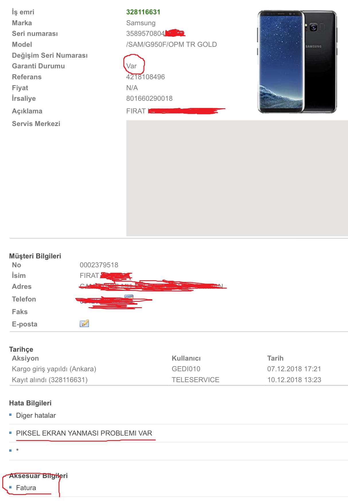 Samsung Türkiye garantiye gelen bir cihazına ilginç muamele uyguladı. Samsung S8 sahibi olan kullanıcı telefonundaki bir arıza nedeniyle servise gitmeye karar verdi. Telefonunun garantisi mevcut. Tabi fiyatlarda epey yüksek olduğu için garantiden başka yönteme başvurulması mantıksız.