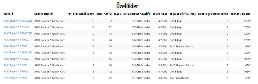 Sıralama olarak En güçlü Amd İşlemci sıralaması ;