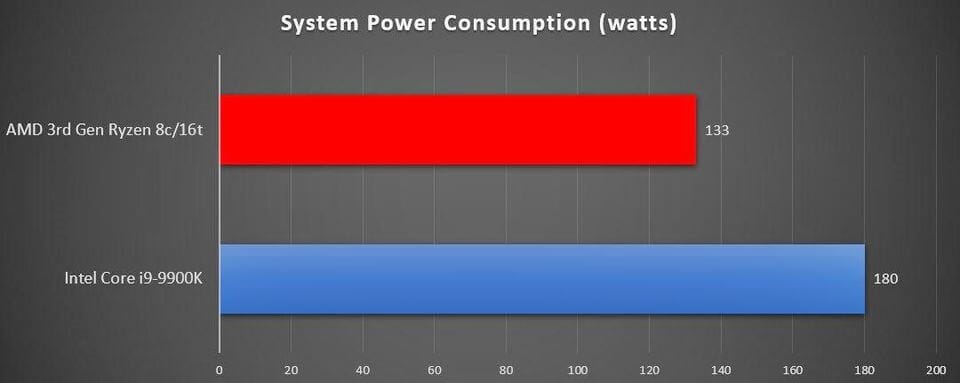 Güç tüketimi tarafında ise AMD Ryzen 3000 serisi işlemci, Intel destekli sisteme göre %30 daha az güç harcarken, AMD'nin yeni CPU mimarisinin verimliliğinin ne kadar fark ettiği net bir şekilde görülmüş oldu. Zaten canlı yayında da bu detaylar büyük alkış aldı.
