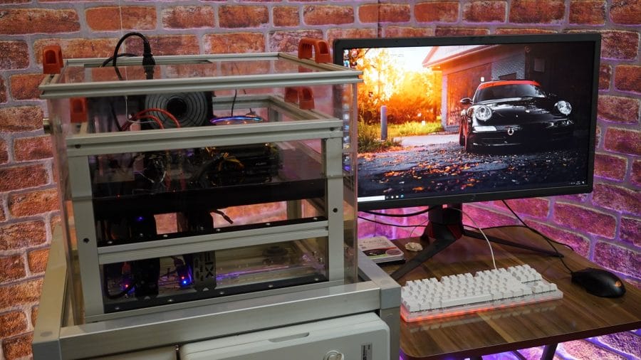 Büyük bir emekle hazırladığımız sistemde, bir taşıyıcı iskelet kısmımız var. Bu kısım toplamda 6 ekran kartına kadar takılabilen ve tüm sistem parçalarının yer aldığı, havuza daldırılacak olan bölüm.