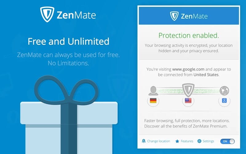 Zenmate'yi bilmeyenler için ufak bir özet geçelim; ücretsiz versiyonunda dört adet ülkeden bağlanabilme fırsatı sunan uygulama sayesinde bizi anlık olarak farklı yerlerden bağlanıyor göstererek istediğimiz internet sitesine erişebiliyorduk. Hatta internet yavaşlatıldığında da farklı ülkelerden erişerek yine normal kullanıma açık oluyordu.