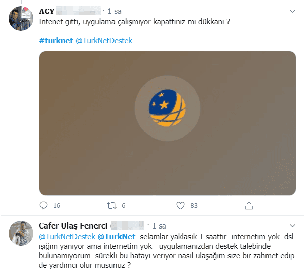 TurkNet resmi hesabını etiketleyerek, problem yaşadıklarını ifade ediyorlar. Bu duruma karşılık TurkNet kanadından, kullanıcıları bilgilendirecek bir açıklama yapılmadı. Bazı TurkNet kullanıcıları ise sorunun