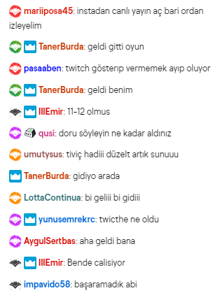 Twitch'te yayın yapmaya çalışan bazı yayıncı dostlarımızın yorumlarına da bir takım esprili mesajlar gelmeye devam ediyor. Kimisi geldi dese de, yayınlar ne yazık ki şuanda pasif durumda.