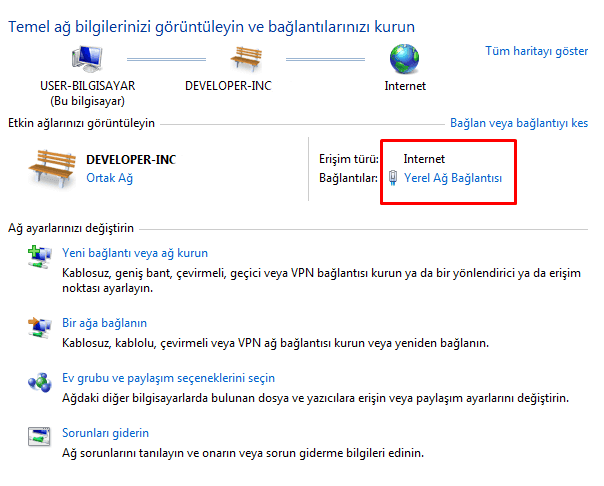 * DNS ayarlarınızı değiştirmek için ilk olarak bilgisayarınızdan Başlat ❱ Denetim Masası ❱ İnternet ve Ağ ❱ Ağ Paylaşım Merkezi sekmesine tıklayın.