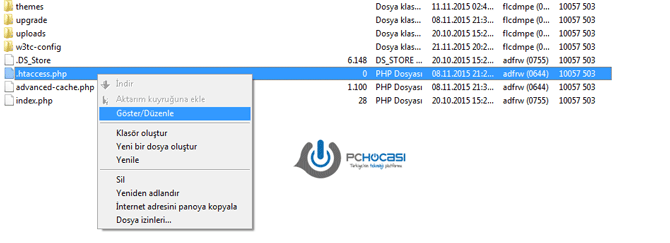 Wordpress kullanan kullanıcılar için .htaccess dosyası FTP'da görünmeyebilir. Bunu görmek için
