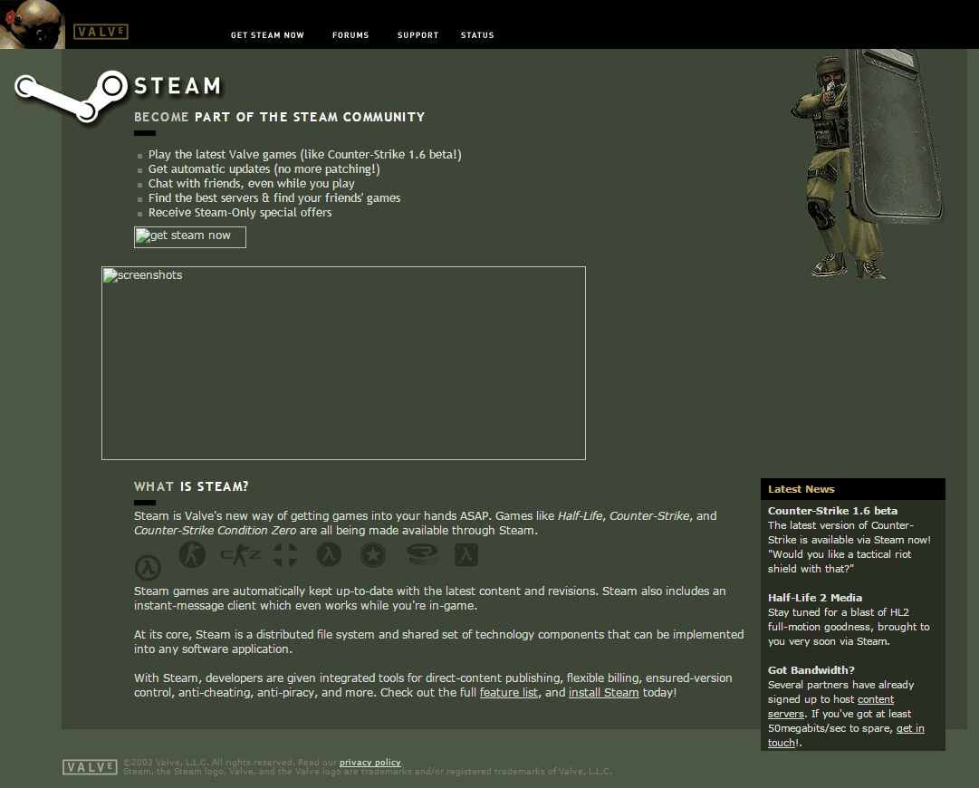 Sonra arayüzde bağlantı sorunları, patlamalar ve yavaş indirme hızları meydana gelmeye başladı. Oyuncuların aldığı ilk tat gerçekten çok ekşiydi. Hatta pek çok forumda Steam'ın kötü olduğu ve tutmayacağı konusunda paylaşımlar yapılmıştı. Aşağıdaki görsellerde de 2003 tasarımına ait detayları görebiliyorsunuz.