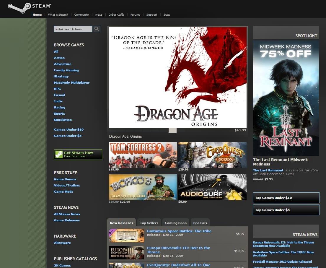 Ayrıca çok tutan Dragon Age Origins oyunu da satışa çıkmış ve Steam'ın elindeki güç ile satışlar artmaya devam etmişti.