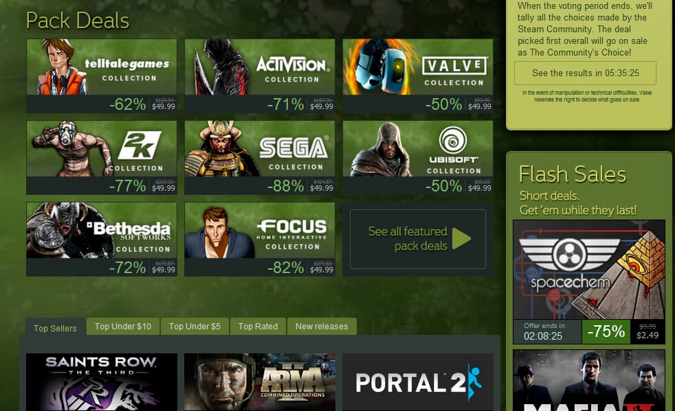 "5 dolar ve 10 doların altındaki oyunlar" kategorisi eklendi. Aynı zamanda Steam online olarak düzenli satın alımların başladığını duyurdu. Bu da muhtemel olarak ucuz oyunların sürekli devam edeceğini ve gelecekte de var olması için önemli temellerin atıldığının göstergesiydi.