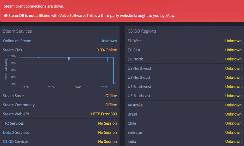 Ancak Steam kış indirimlerinin ilk gününde ne yazık ki böyle bir kaos yaşanarak çökmeye neden oldu. Aynı zamanda ABD'de sunuculara erişim sağlamak isterken bir kaç sunucunun kullanılamaz hale geldiği konusunda da bilgilendirmeler bulunuyor.