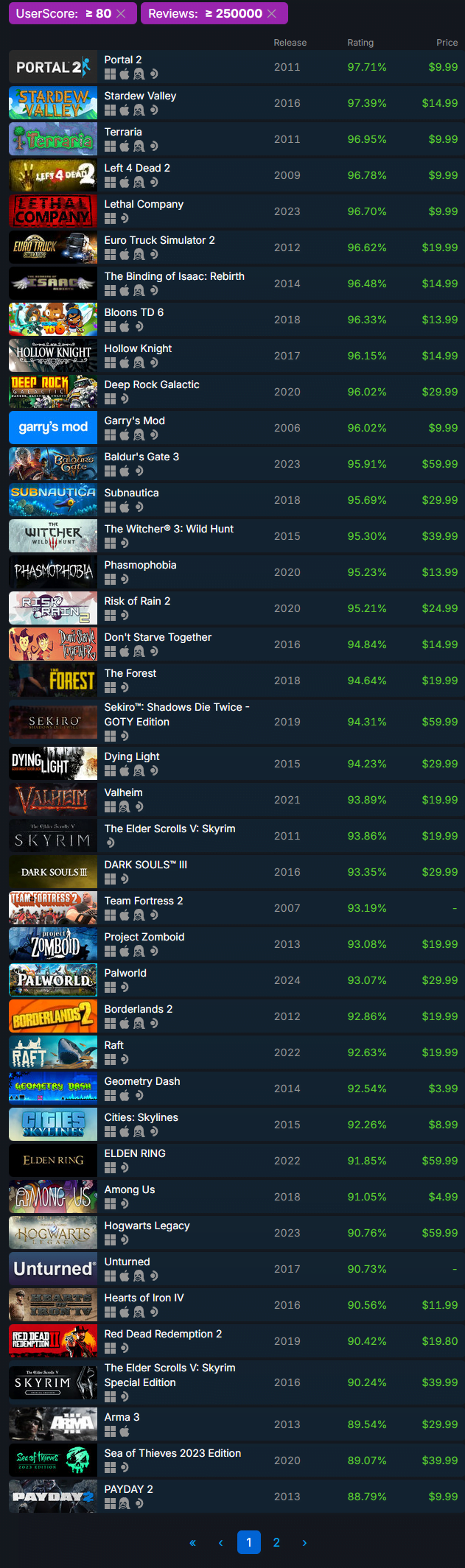 - Team Fortress 2 : (1.030.693 değerlendirme)