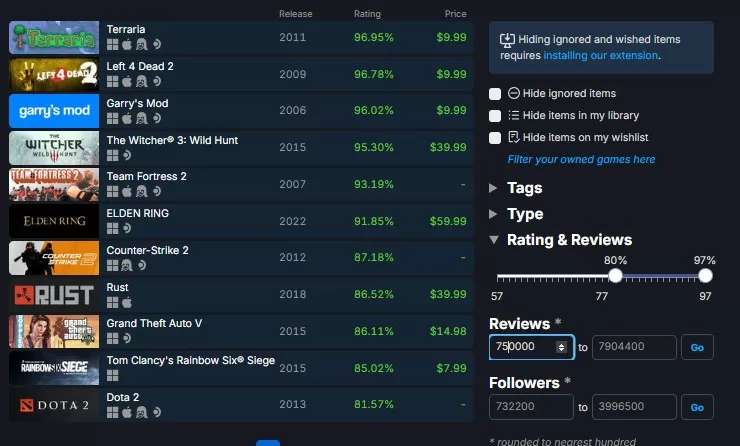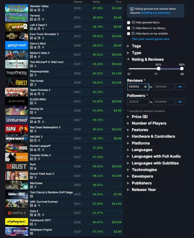 Steam'in en çok inceleme alan oyunlarını SteamDb verilerinden sağlayarak sizlere listeledik.