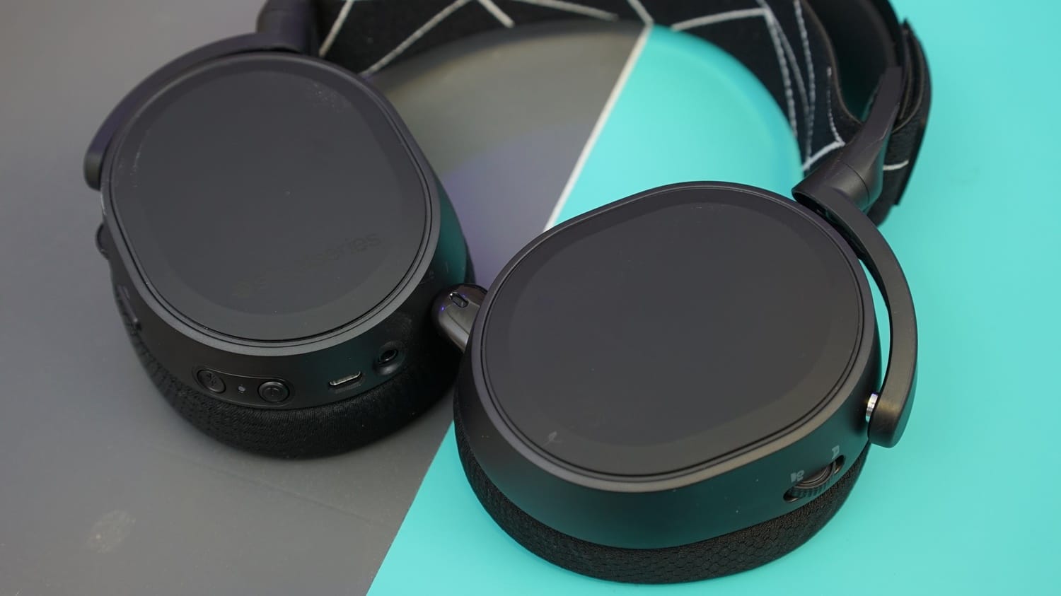 Arctis 9 Wireless'in etrafına baktığımızda her iki bölümde de çeşitli kontrol düğmeleri görüyoruz. Sol bölümde sonsuz döngüye sahip olmayan bir ses tekerleği, yanında mikrofonu açıp kapatmaya yarayan bir anahtar ve altında ise Bluetooth ya da kablosuz alıcı seçimi yapmanızı sağlayan düğmeler bulunuyor. Ayrıca 3.5mm jack ve micro-USB girişi de bu alanda yer alıyor. Sağ bölümde ise ChatMix adı verilen bir ayar tekerleği mevcut. Bu tekerlek sayesinde oyun ya da içerik sesi ile mikrofon iletişimi sesi arasında tercih yapabiliyorsunuz. Örneğin oyun oynarken oyun sesi chat sesinden az geliyorsa bu tekerleği çevirerek oyun sesini öne alabilmeniz mümkün.