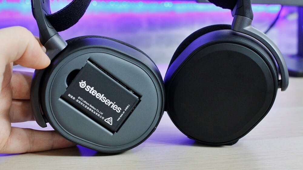 Gelelim Arctis Pro'nun tasarımındaki bir diğer detay olan kulaklık kapaklarına. Üzerinde herhangi bir RGB aydınlatma bulunmayan bu kapaklar, oldukça kolay ayrılıp takılabiliyor. Kapakların ayrılıp takılmasının mantığı ise alt tarafta bulunan batarya. Daha önce Nokia marka telefonlarda uzun yıllarca kullanıldığını gördüğümüz bu Lityum-iyon batarya kulaklığın tüm güç ihtiyacını karşılıyor.