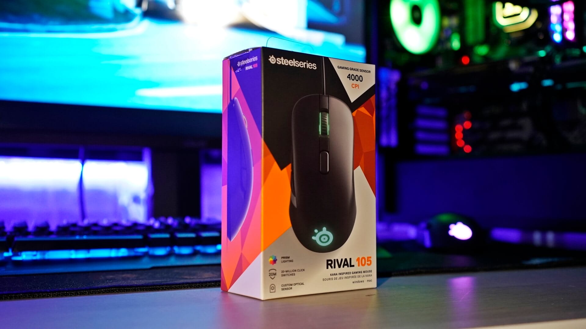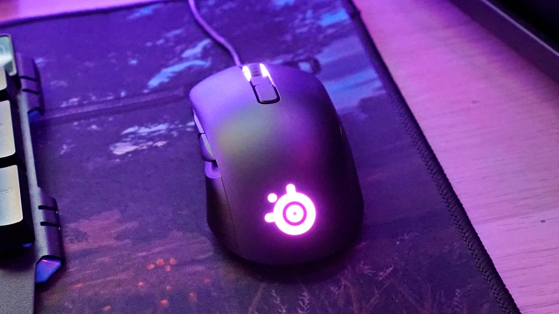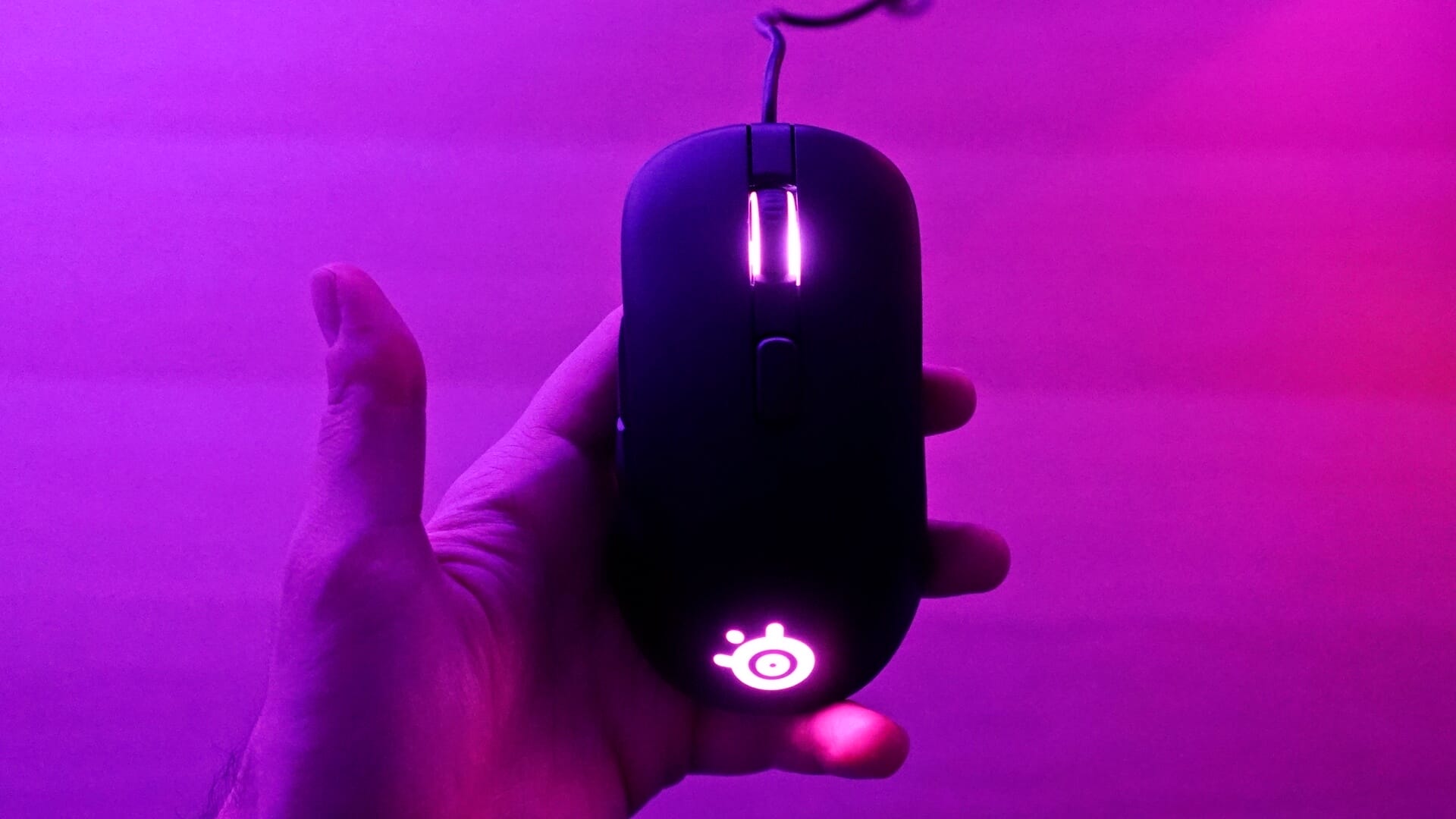 Rival 105, tasarım noktasında sade bir görüntü sunsa da, RGB aydınlatma desteğini kesmiş değil. Mouseun arka kısmında bulunan SteelSeries logosu ve tekerlek kenarlarındaki şeritler, RGB aydınlatmalara sahip. Her ne kadar kullanım anında bu alanlar kapanıyor olsa da, boş durumda hoş bir görüntü oluşturuyorlar.