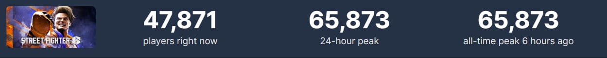 Street Fighter 6, anlık 66 bin oyuncu ile neredeyse rekoru iki katına çıkartıp katladı. Oyun, bu rekoru çıkış gününde kırdı. Serinin önceki oyunu olan Street Fighter 5'in ulaşmış olduğu en fazla anlık oyuncu sayısı ise 14 bin olmuştu.