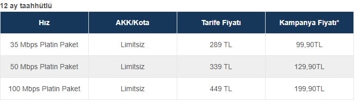 Hemen hemen her firma kendi içerisinde bir fiyat düzenlemesi yaparken Turkcell'de yeni bir kampanyaya gitti. Turkcell Fiber Platin paketlerde indirime gidilirken bu paketlerin fiyatında ciddi oynama yapıldı. Hemde bu pakete geçen kullanıcılara ilk ay 100Mbps internet hediye.