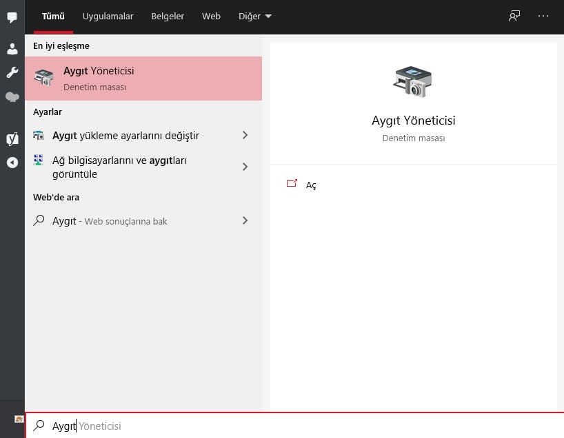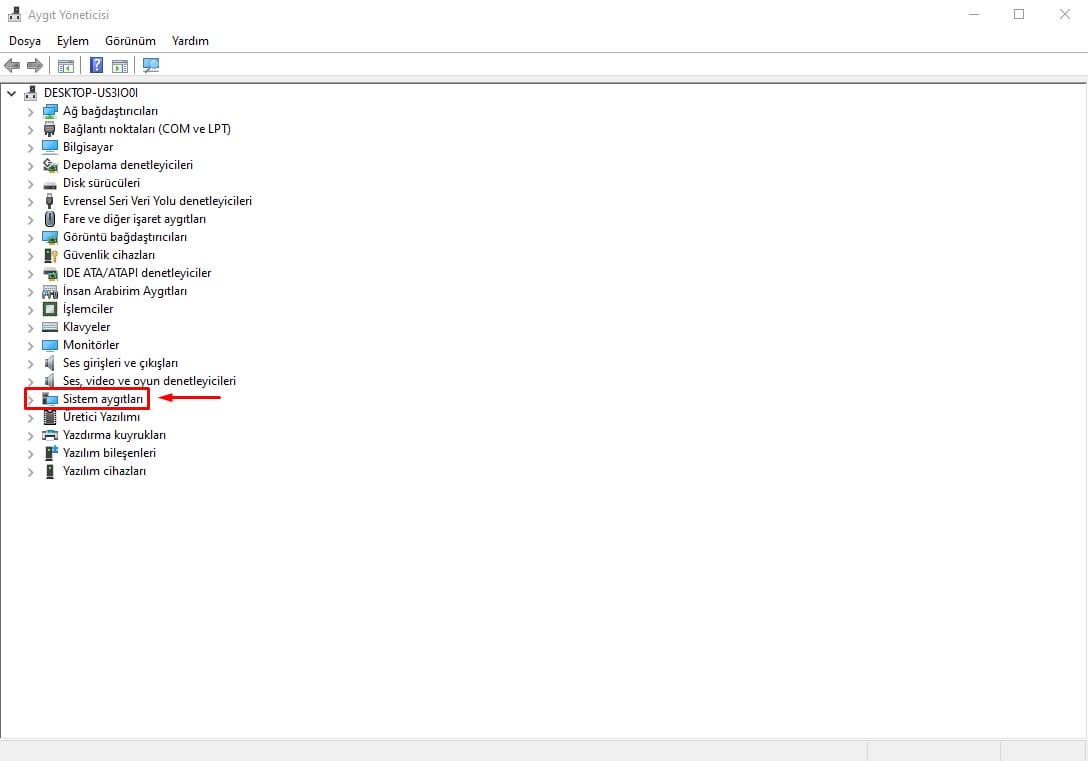 Akabinde Sistem aygıtlarına giriş yapıyoruz.