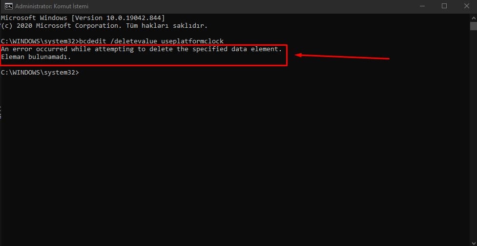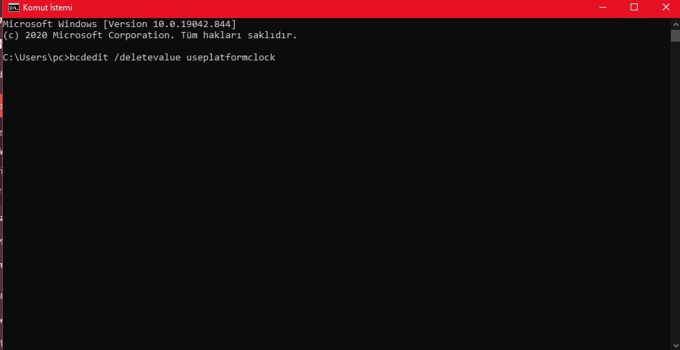 Ardından size vereceğim kodu yapıştırıp enter diyorsunuz. Kod: bcdedit /deletevalue useplatformclock