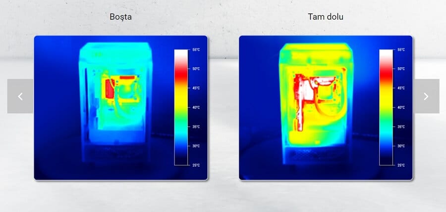 İkinci kısımda ise malzeme artısı karşımıza çıkıyor. Zaten büyük bir kısımda temperli cam kullanıldığını belirttik. Geri kalan kasnak, kasa kısmında ise korozyona dayanıklı SPCC çelik kullanılmış.