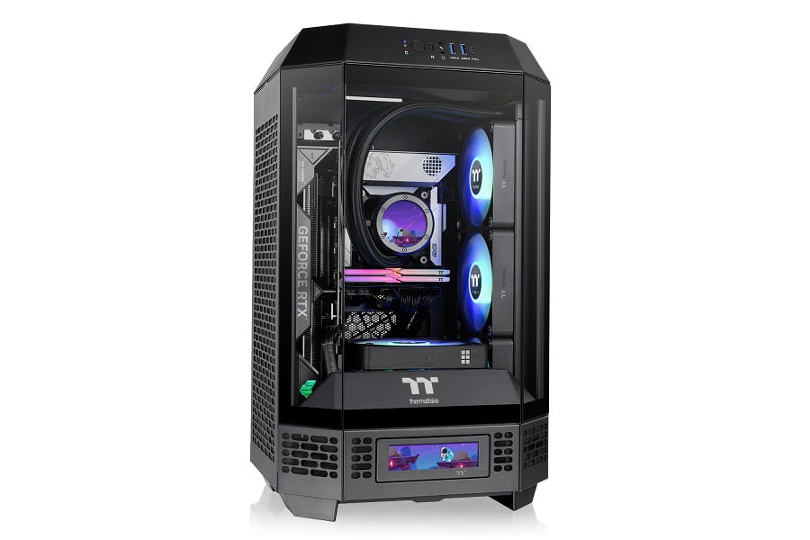 The Tower serisinin görsel çekiciliğini artırmak için ek bir LCD Ekran Kiti ile yükseltebilirsiniz. Bu kit, bileşenlerin gerçek zamanlı bilgilerini, saati ve hava durumunu sunabilen 3,9 inç LCD ekran içerir. Ayrıca, TT RGB Plus yazılımı aracılığıyla herhangi bir görüntü veya GIF yükleyebilir, kasayı kendi tarzınıza göre zahmetsizce özelleştirebilirsiniz.