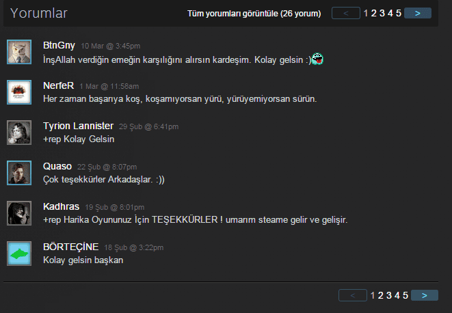 Hem The Prison Game için olsun, hem de diğer Türk yapımı oyunlar için olsun destekler gerçekten çok gurur verici. Sosyal medya ve Steam üzerinde yapılan yorumlar, eleştiriler ve oyun içerisinde olması istenen tavsiyeleri çok beğendik. Gerçekten bizi biz yapan bu bağın olduğuna canı gönülden inanıyoruz. Hatta oyun çıktığında bir yarışma düzenleyip 5 adet The Prison Game'i takipçilerimize ücretsiz olarak vereceğiz, tabii ufak bir yarışma ile :)