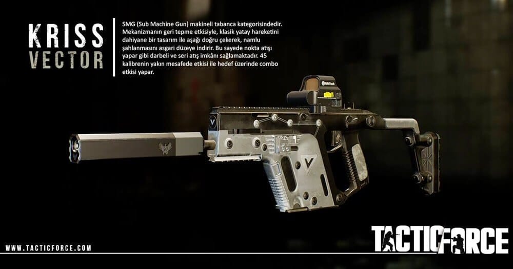 Oyun içerisinde belki de kırılma noktası dediğimiz alanlardan bir tanesine geldik. Şuanda Tactic Force oyunu içerisinde yayınlanan pek çok silah ve ve bunların çoğu yerli yapım silahlar. Başta Bora 12 olmak üzere, MPT-76, KNT-76, AK-47, Desert Eagle, Vector gibi modeller bulunuyor.