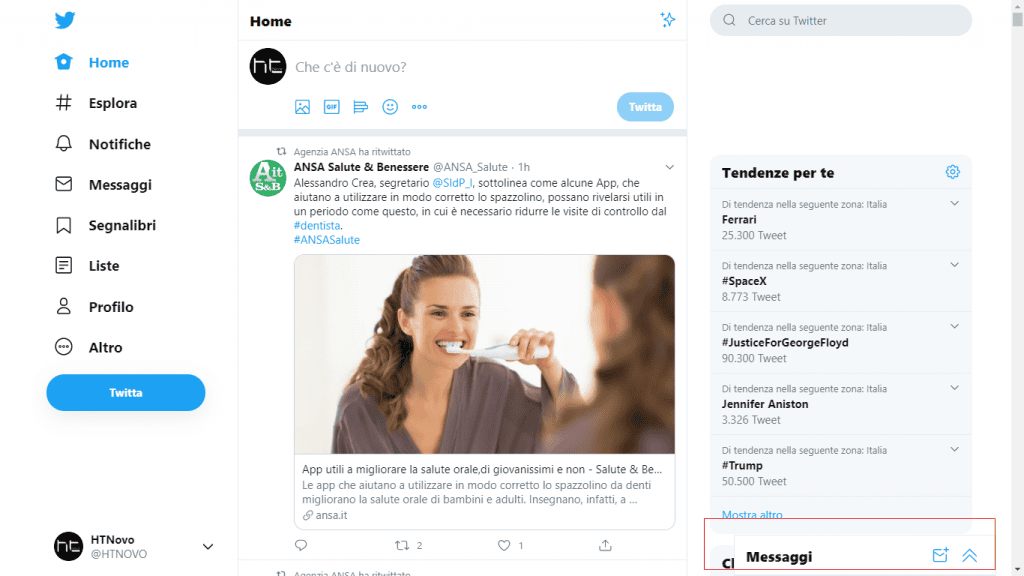 Twitter ana sayfanızın sağ alt bölümünde asılı duran Mesajlar bölümüne tıkladığınızda, son konuşmalarınızı listeleyen bir pencere açılır. Ayrıca, yeni iletileri görebilir ve bu iletilere anında yanıt verebilirsiniz.